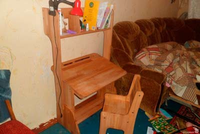 Под подъемной столешницей - ниша для тетрадок и канцелярских принадлежностей.